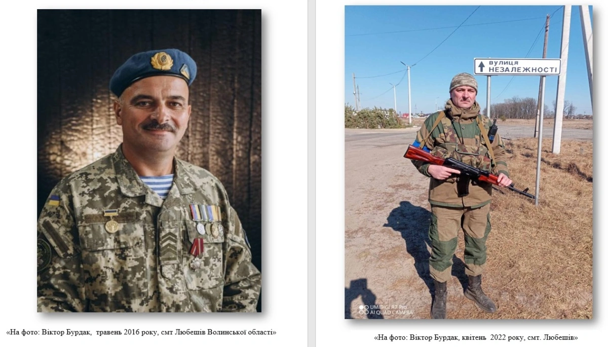 Час… У кожного із нас з ним свої рахунки, а в України вони особливі. Наш народ переживає одну з найтрагічніших сторінок своєї історії. На шляху боротьби за незалежність він приносить у жертву своїх найкращих синів і дочок. Останніми в цьому списку стали Герої, які, захищаючи нас у війні з росією та її найманцями, віддали своє життя за право України залишатися незмінною на карті світу. Серед полеглих мужніх патріотів Любешівщини викарбуване ім’я Бурдака Віктора Івановича