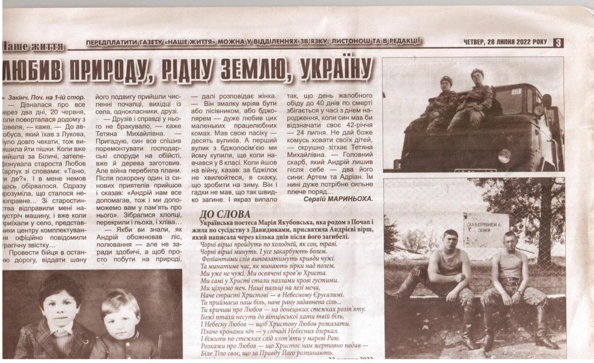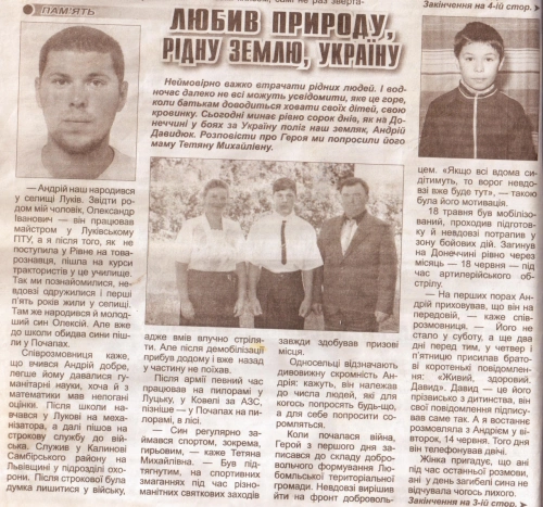 Українська поетеса Марія Якубовська ,яка родом з с.Почап і жила по сусідству з Давидюками , присвятила Андрієві вірш, який написала через декілька днів після його загибилі.
