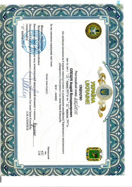 У виші є Військовий інститут, що здійснює підготовку професіоналів з повною вищою освітою для Збройних Сил України та інших силових структур сектору безпеки і оборони України, його і закінчив юнак у званні молодшого лейтенанта та прийняв військову присягу 23серпня 2012 року.