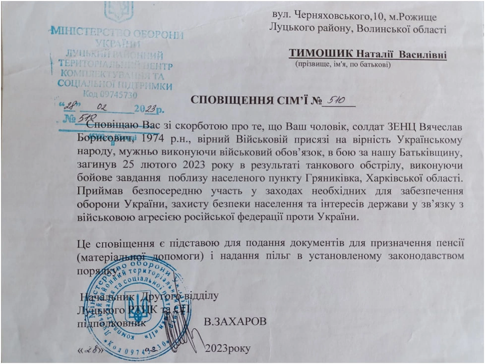Звання «Почесний громадянин міста Рожище» присвоїли загиблому у російсько-українській війні добровольцю та кіборгу Вячеславу Зенцу.
